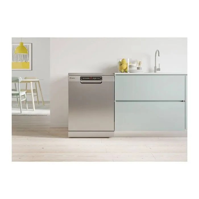 Le lave-vaisselle CANDY CDPQ 4D620PX/E est un appareil de pose libre au coloris inox, idéal pour les foyers avec une grande capacité de 16 couverts. Il offre une performance de lavage exceptionnelle avec son choix de 9 programmes spécifiques, dont le programme exclusif Zoom 39min pour un lavage rapide et efficace. Grâce à son ouverture automatique en fin de cycle, le séchage est rapide et économique. Ce lave-vaisselle dispose d’un moteur à induction performant, silencieux et fiable, et il offre des fonctionnalités pratiques telles qu’un panier à couverts et un panier supérieur réglable en hauteur. Avec son niveau sonore de 45 dB, il fonctionne discrètement et s’intègre parfaitement dans votre cuisine.